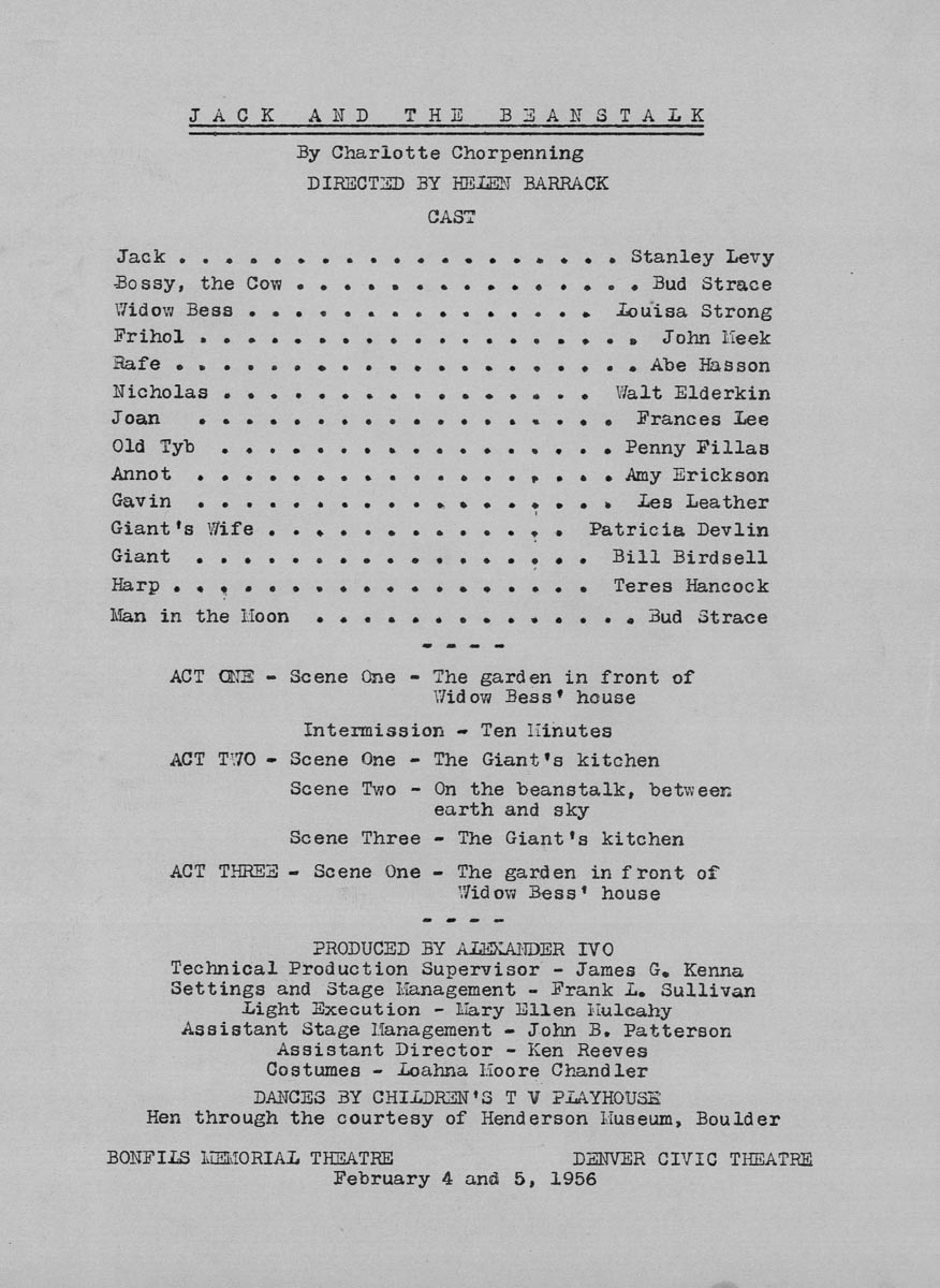 | 55-56 | Sat, Feb 11, 1956 | Jack And The Beanstalk | Helen Barrack |
