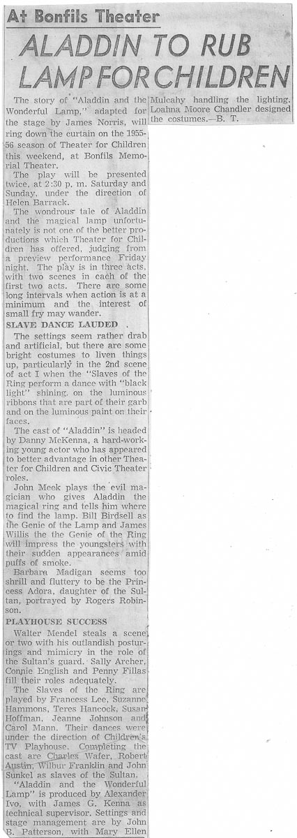 | 55-56 | Sat, Apr 07, 1956 | Aladdin And His Wonderful Lamp | Helen Barrack |