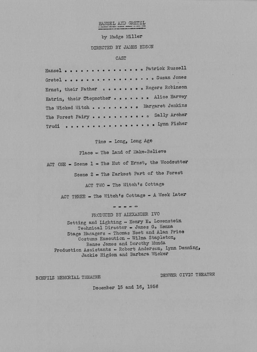 | 56-57 | Sat, Dec 15, 1956 | Hansel And Gretel | Jim Edson |