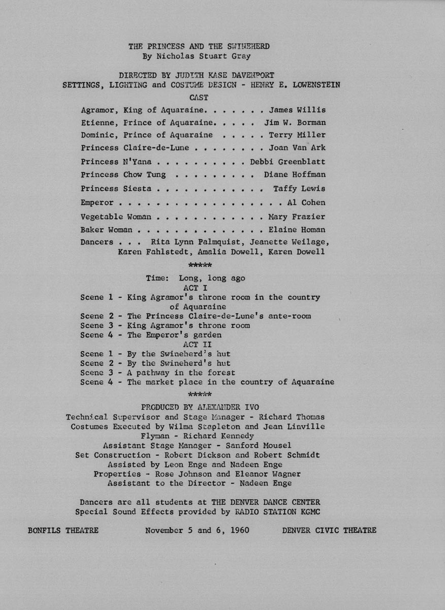 | 60-61 | Sat, Nov 05, 1960 | The Princess And The Swine Herd | Judith Kase Davenport |