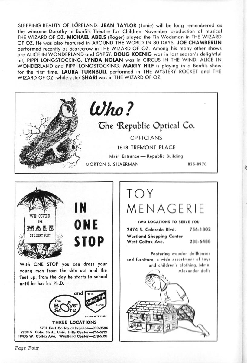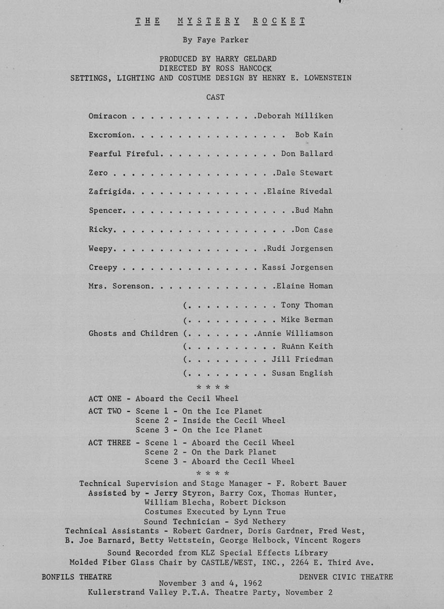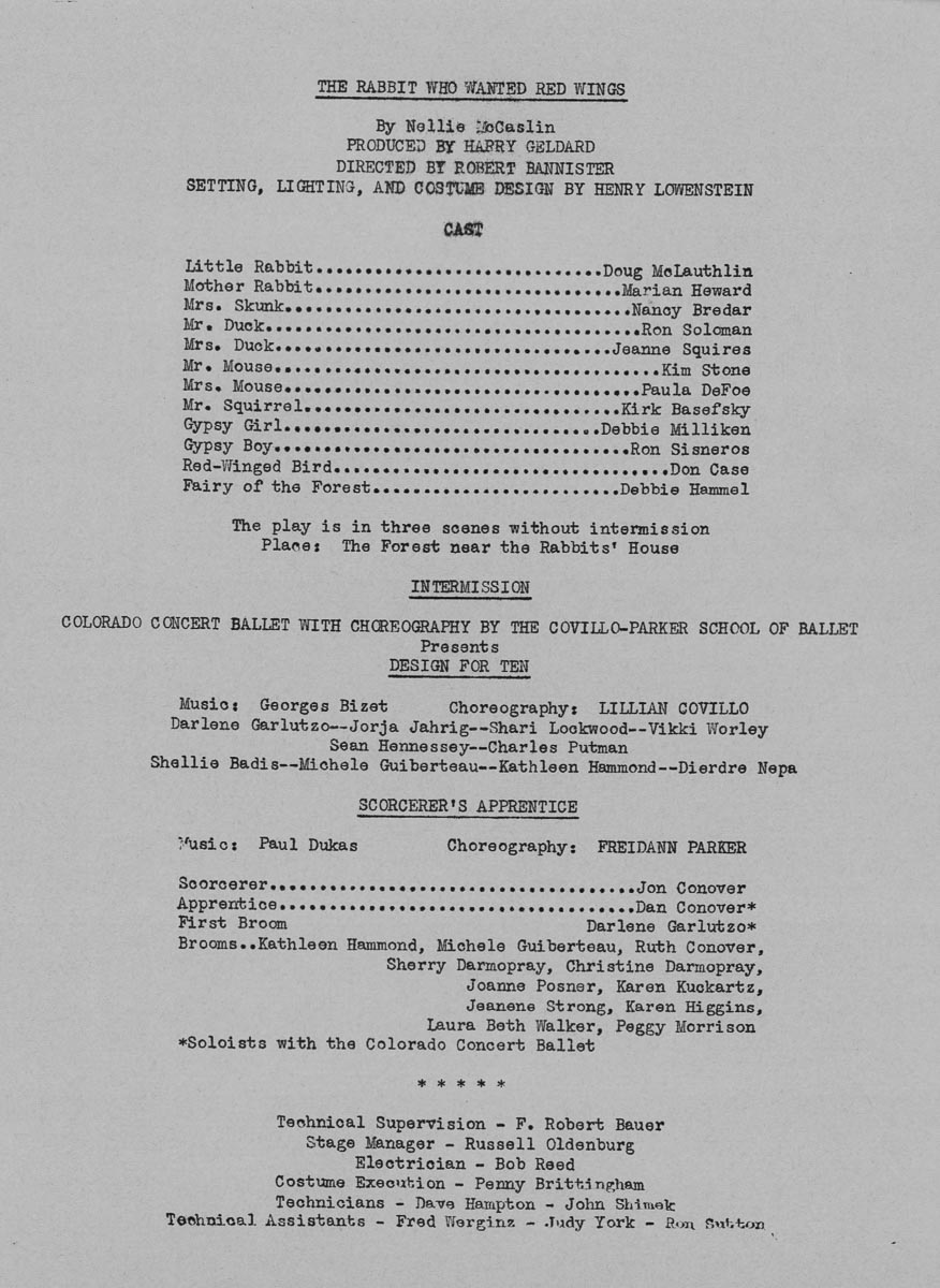| 60-61 | Sat, Mar 18, 1961 | Snowwhite And The Seven Dwarfs | Judith Kase Davenport |