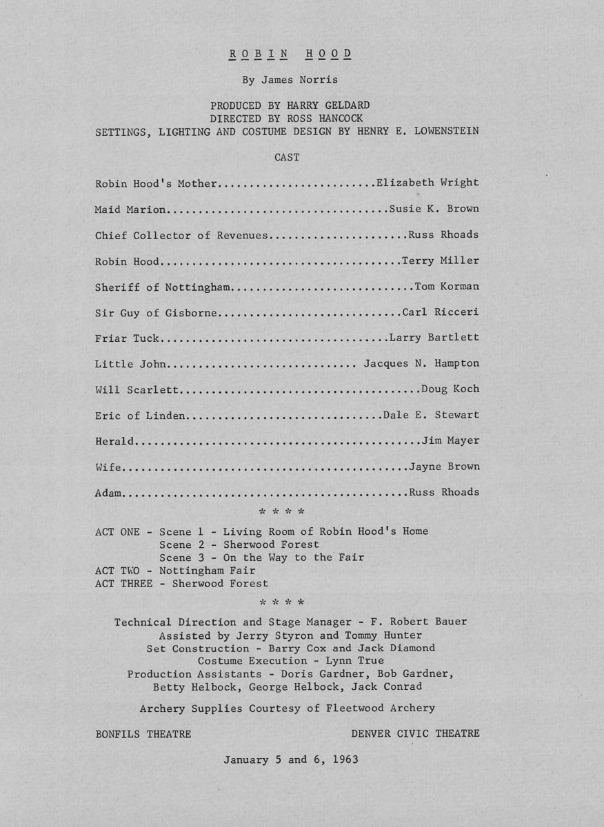 | 62-63 | Sat, Jan 05, 1963 | Robin Hood | Ross Hancock |