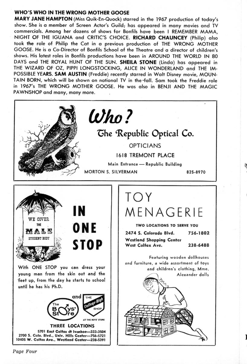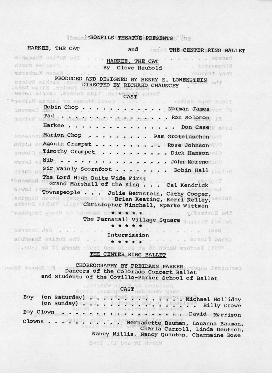 | 67-68 | Wed, May 15, 1968 | Center Ring Ballet And Harkee The Cat | Freidann Parker/dick Chauncey |