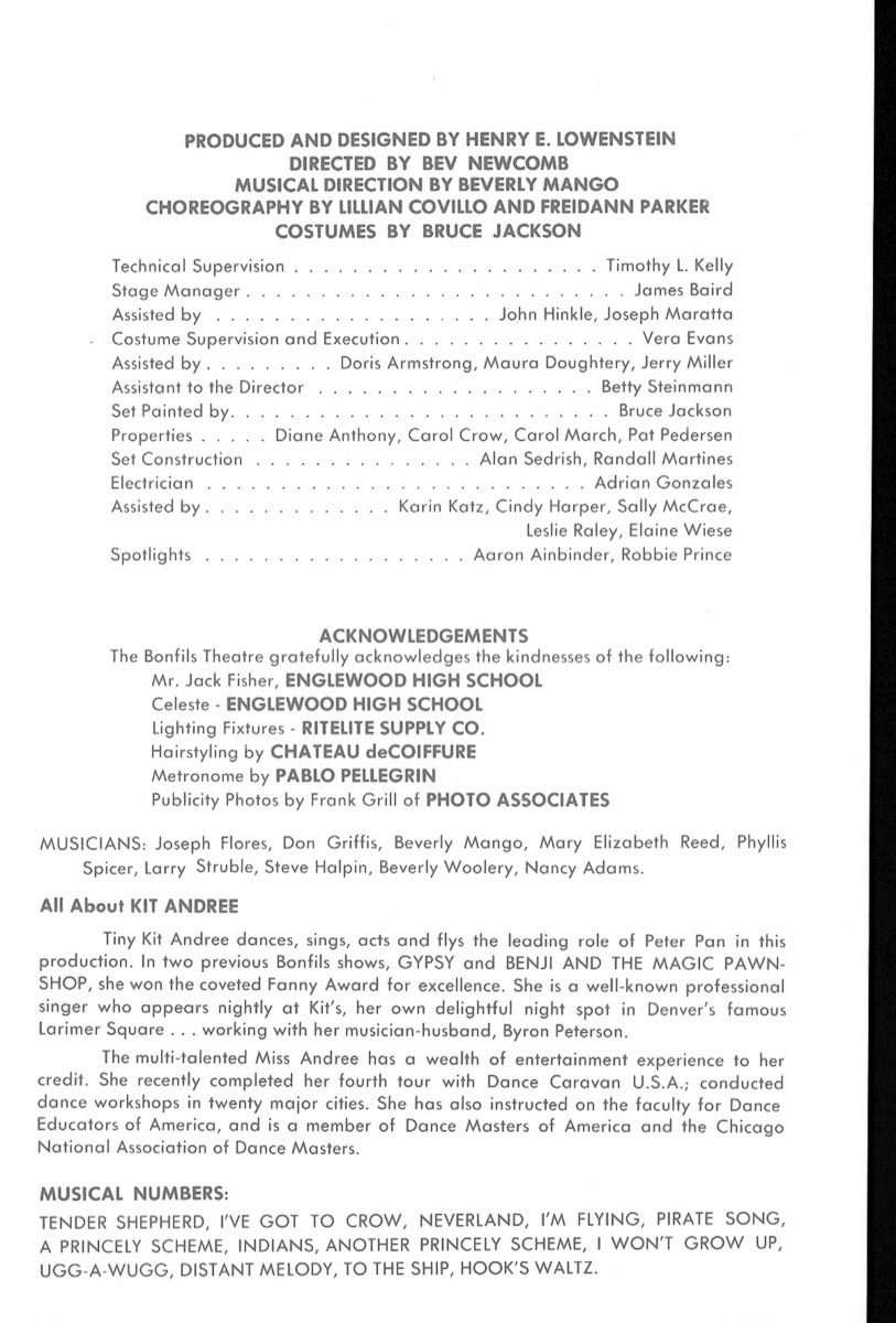 | 71-72 | Fri, Nov 26, 1971 | Peter Pan | Bev Newcomb |