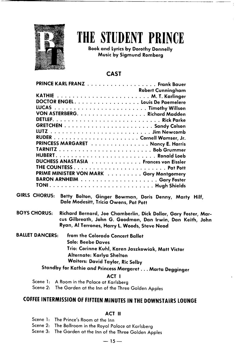 | 71-72 | Thu, May 04, 1972 | The Student Prince | Bob Bannister |