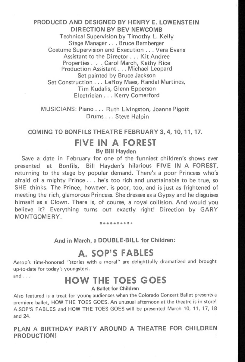 | 72-73 | Sat, Mar 10, 1973 | A.Sop’s Fables And How The Toes Goes | Freidann Parker/ Bev Newcomb |