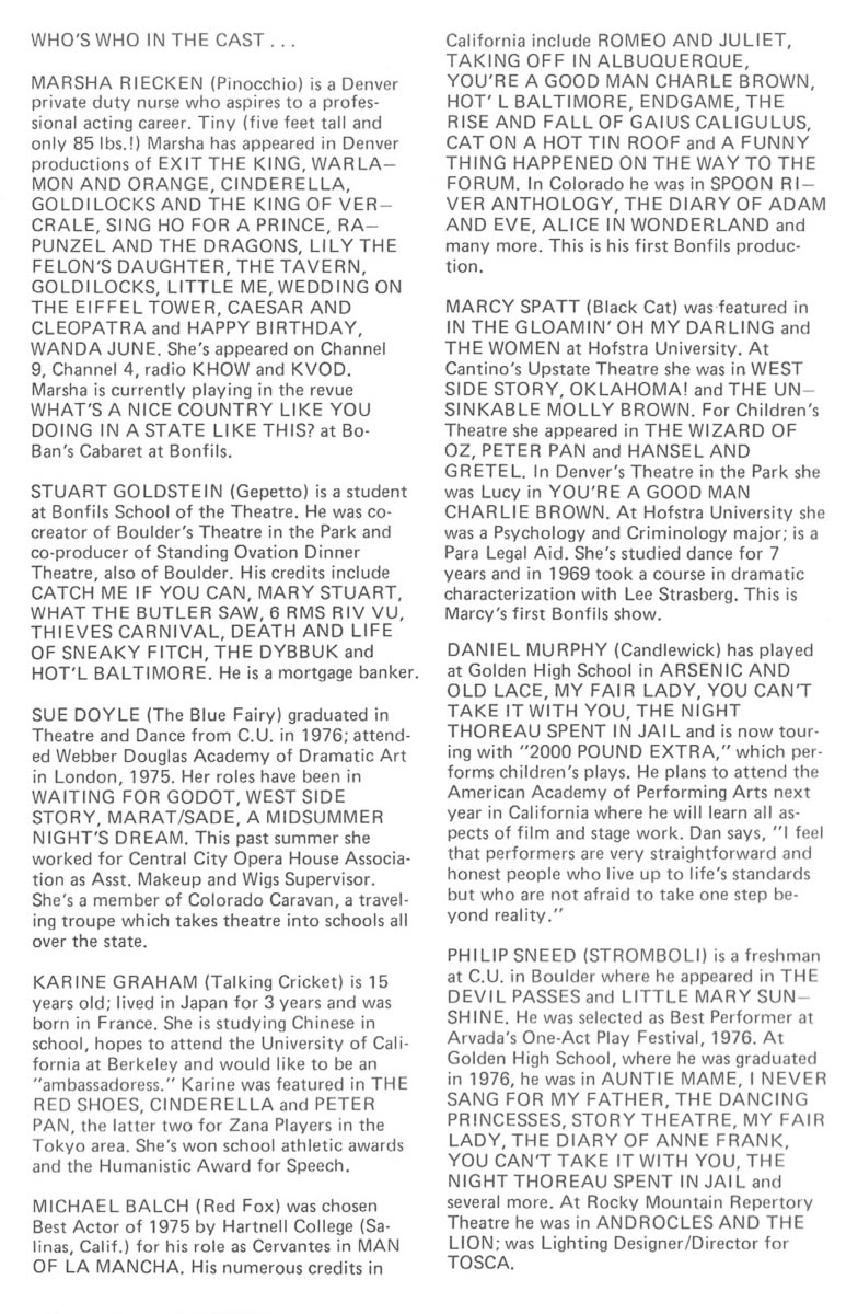 | 76-77 | Sat, Oct 30, 1976 | Pinocchio | Bonnie Eckard |