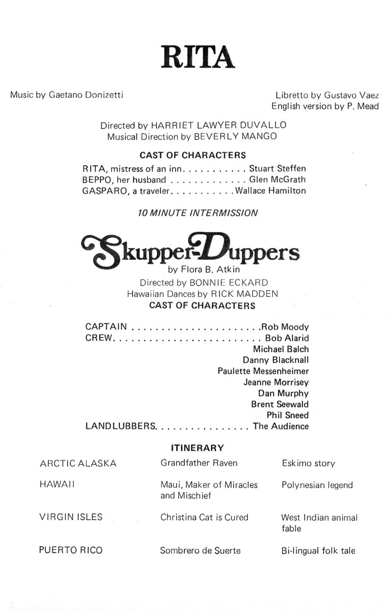 | 73-74 | Sat, Jan 12, 1974 | Tarradiddle Tales | Bev Newcomb & M’el Reum |
