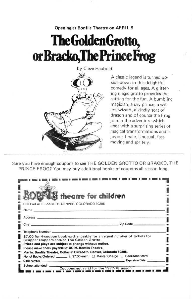 | 76-77 | Sat, Apr 09, 1977 | The Golden Grotto, or Bracko, The Prince Frog | Michael Holden |