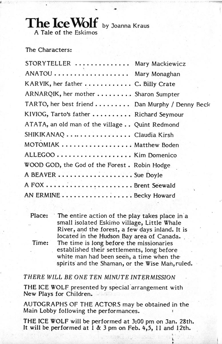 | 77-78 | Sat, Jan 28, 1978 | The Ice Wolf | Bonnie Eckard |