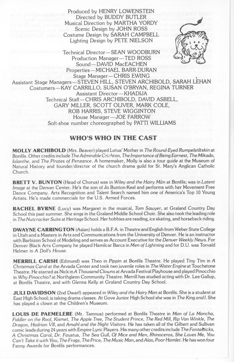 | 81-82 | Sat, Nov 07, 1981 | The Lion, The Witch, And The Wardrobe | Buddy Butler |
