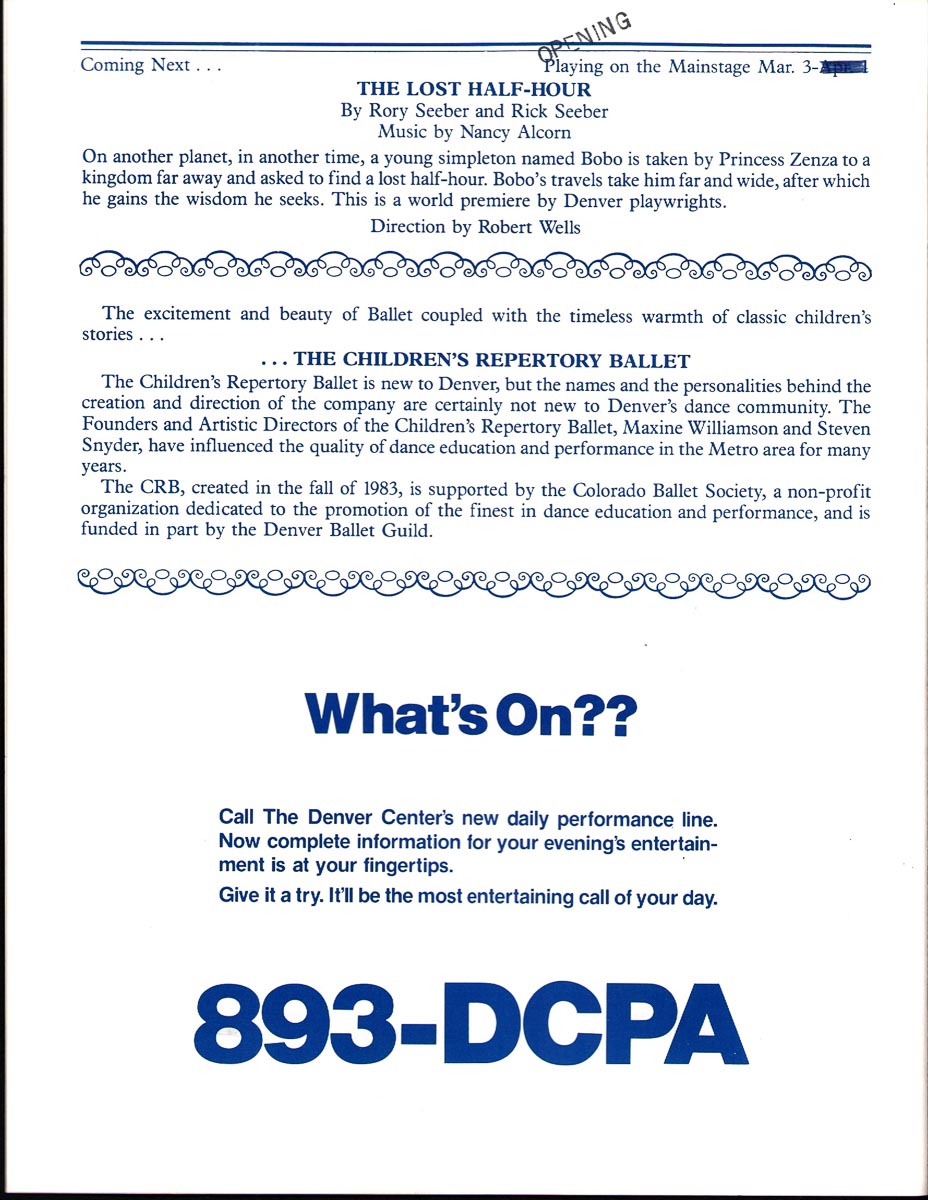 | 83-84 | Sat, Jan 28, 1984 | Peter And The Wolf | Khadija Haynes |