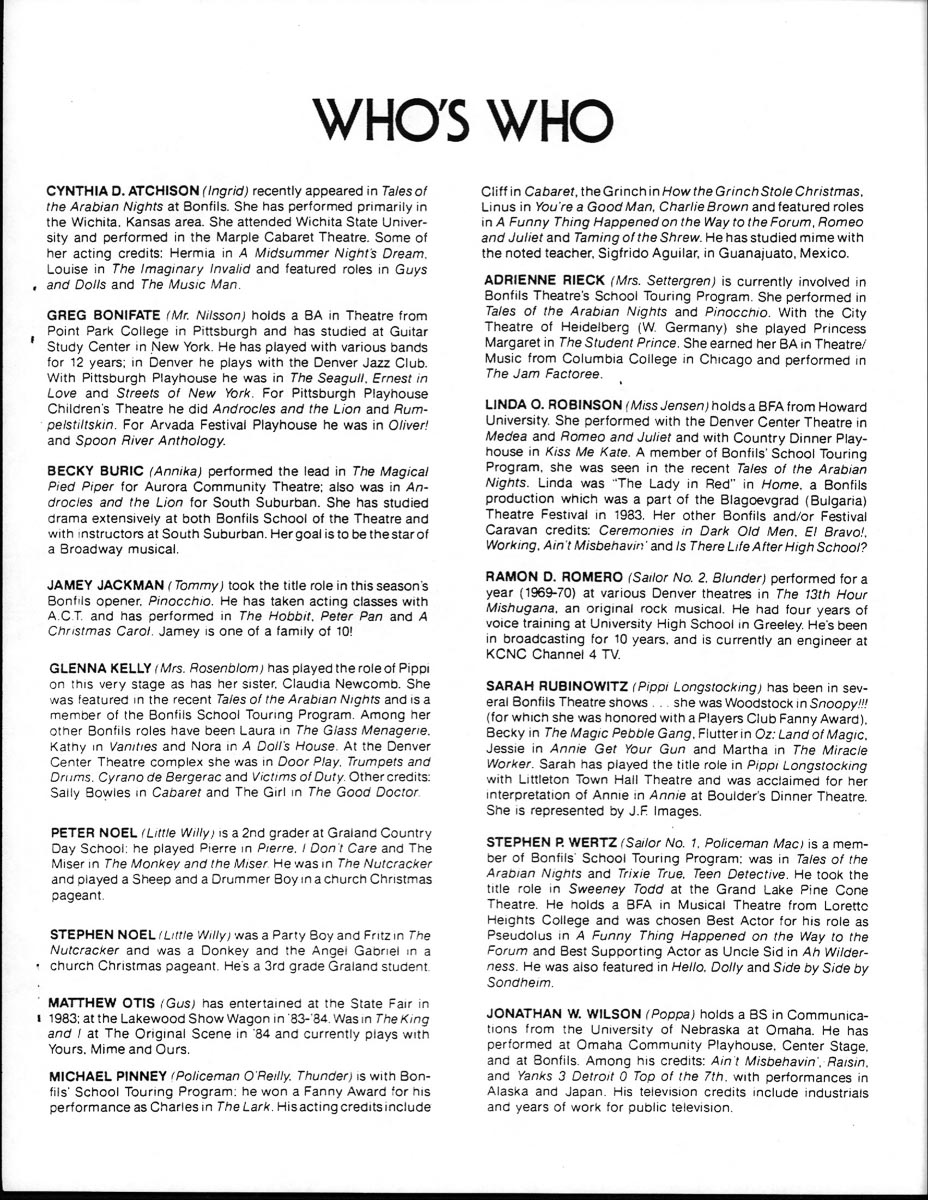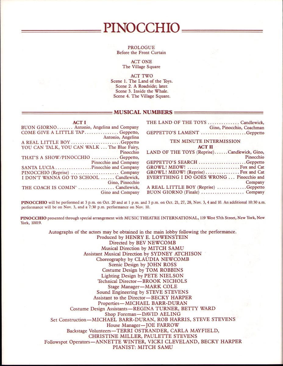 | 84-85 | Sat, Oct 20, 1984 | Pinocchio | Bev Newcomb |