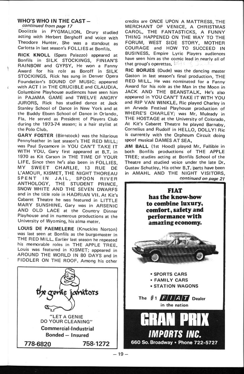 74-75 | Thu, Mar 20, 1975 | High Button Shoes | Bob Bannister |