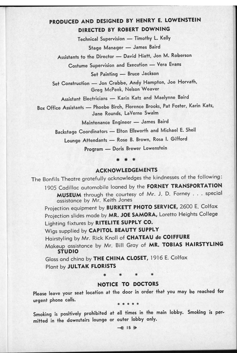 Many wonderful community performers donated their time to stand on a stage that was surrounded with professional staff who provided top-notch sets, props, costumes, lighting and sound. While not all shows were a smashing success, many were favorably reviewed and well attended. It was a unique platform for amateurs to hone their skills in the best possible environment. From the opening performance of “Green Grow the Lilacs” in 1953 to the closing of “A Christmas Carol” in 1985, there were 231 Main Stage productions.