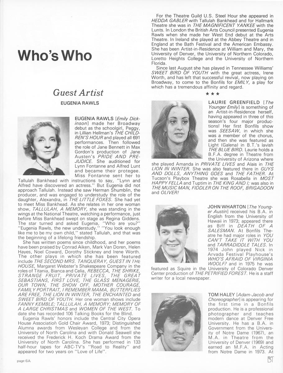 | 80-81 | Fri, Jan 16, 1981 | The Glass Menagerie | Bev Newcomb |