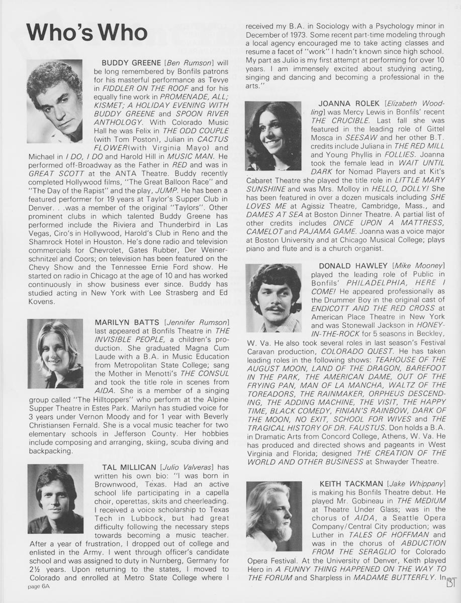 Many wonderful community performers donated their time to stand on a stage that was surrounded with professional staff who provided top-notch sets, props, costumes, lighting and sound. While not all shows were a smashing success, many were favorably reviewed and well attended. It was a unique platform for amateurs to hone their skills in the best possible environment. From the opening performance of “Green Grow the Lilacs” in 1953 to the closing of “A Christmas Carol” in 1985, there were 231 Main Stage productions.