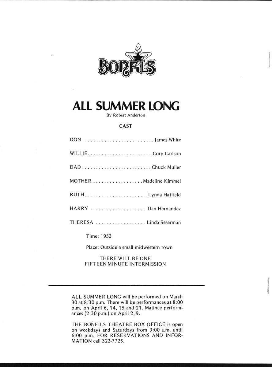 Many wonderful community performers donated their time to stand on a stage that was surrounded with professional staff who provided top-notch sets, props, costumes, lighting and sound. While not all shows were a smashing success, many were favorably reviewed and well attended. It was a unique platform for amateurs to hone their skills in the best possible environment. From the opening performance of “Green Grow the Lilacs” in 1953 to the closing of “A Christmas Carol” in 1985, there were 231 Main Stage productions.